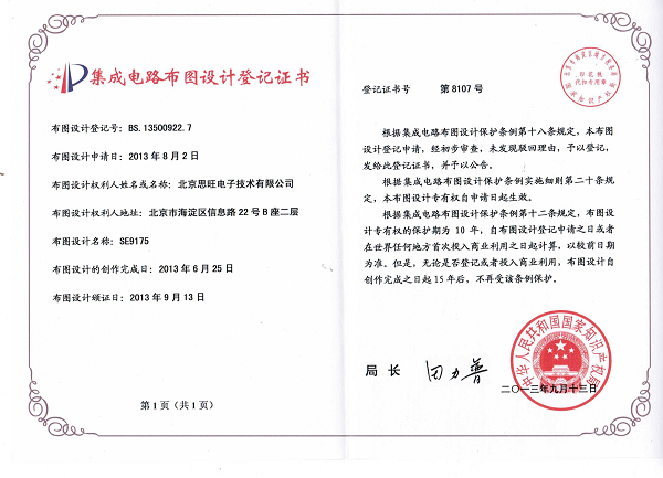 高高涨庆贺司结果SE9022、SE9023、SE9175 达到我国小知识产权证局“集成式电路板布图建议挂号”